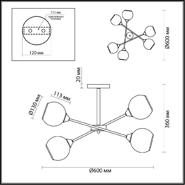 - Форма плафона: шар