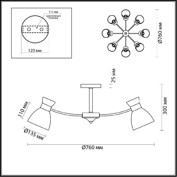 - Количество ламп: 8
